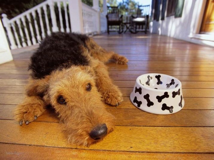 Bir yetişkin olması durumunda, sahibi evcil hayvanı doğal ürünlerle mi yoksa kuru gıdalarla mı besleyeceğini seçmekte özgürdür, o zaman yavru köpeklerde, kendi kendine yapılan bir menüye vurgu yapılmalıdır, ancak kuru yiyecekler yavaş yavaş ve sadece gençler büyüdükçe eklenir. Lütfen unutmayın Genç airedale yavaş yavaş yiyorlar, ancak sık sık - günde yaklaşık 5-6 kez beslemeleri tavsiye edilir.