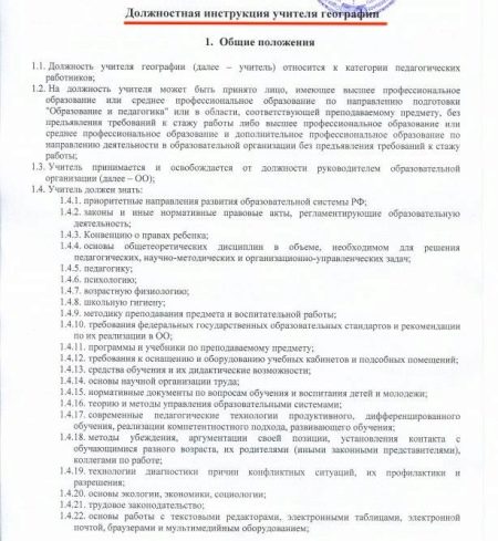 Her öğretmen okul çocuklarının tam eğitimi için profesyonel standarda uymalıdır. İş tanımı, ilgili yetkililer tarafından belirlenen çalışan sorumluluklarının bir listesini içerir. Her çalışan işe başlamadan önce bu konuda bilgi sahibi olmalıdır.