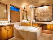 Ek olarak, bu tür banyolardaki armatürler mümkün olduğunca pratik olmalıdır - örneğin, otomatik aydınlatma ayarlı avizeler ve renk aydınlatmalı lambalar.