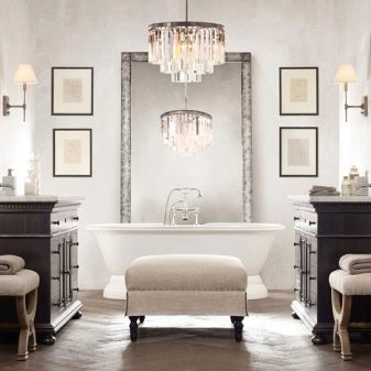 Bugüne kadar, banyo avizeleri için tasarım açısından çok sayıda tasarım seçeneği vardır. Belirli bir model seçerken, odanın mevcut stilini tercih etmelisiniz.