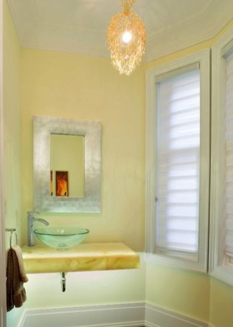 - Sarı. Güneş ve buğday avizeleri, ülke veya Provence tarzı odaların dekorasyonu için idealdir, ancak banyolarda sarı renklerin tüm tonları yerinden çıkar. Sarı avizenin tek artısı, gözlerden stres giderilmesidir.