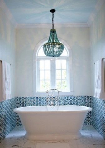 - Vitray. Bu avizeler modelleri çok renkli mozaiklerden yapılmıştır ve daha çok banyoyu aydınlatmaya değil, iç mekanını tamamlamaya yarar. Bu avizeler orijinal tasarımları ve görünümleri ile ayırt edilir, ancak banyoda ek aydınlatma kurulumunu zorlayan loş bir ışık verir.