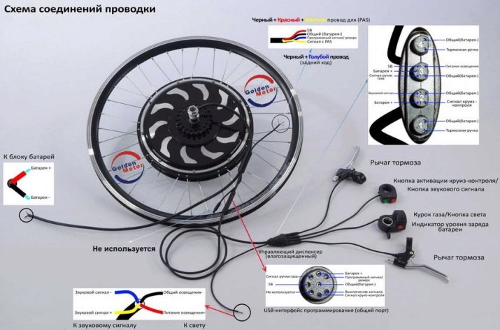 Elektrik teli, vites değiştirme mekanizmasının çalıştığı sağdan değil soldan çıkmalıdır. Motor tekerleğini tutan somunları sökün ve çıkarın. Motor tekerleğini montaj talimatlarına göre monte edin. Sonuna kadar net olmayan bir şey varsa, şirketin web sitesini veya size motor tekerleğini satan mağazayı ziyaret edin. Çoğu zaman, uzmanların desteğini almak daha iyidir, çünkü kontrol cihazını kolayca yakabilirsiniz. Ve bir denetleyici olmadan, doğru akımdan başka bir şeye ihtiyaç duymayan bir komütatör motorunuz yoksa gitmeyeceksiniz.