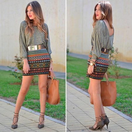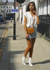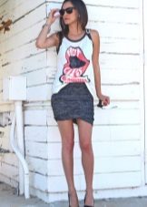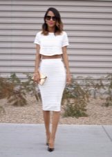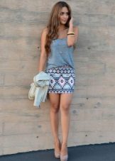 Rahatlamak ve partiler için, kısa dar etekler hafif gevşek üstlerle birlikte uygundur - parlak bir renk olabilirler, ancak yaka olmadan ölçülü bir stil olabilirler. Aksesuarlara odaklanabilirsiniz - parlak bir çerçevede güneş gözlüğü, renkli bir bilezik veya boncuklar görünümünüzü çeşitlendirecek ve yayı parlak ve unutulmaz kılacaktır.