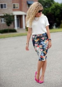 Stilleri nedeniyle, dar etekler çeşitli baskılarla denemeyi mümkün kılar - çiçekler, kelebekler yaz aylarında çok alakalı ve çizgiler, bir kafes ve benzeri geometrik elemanlar kışın iyi görünür.