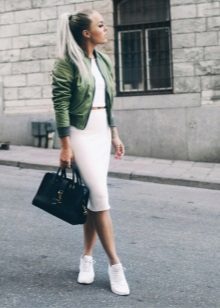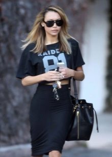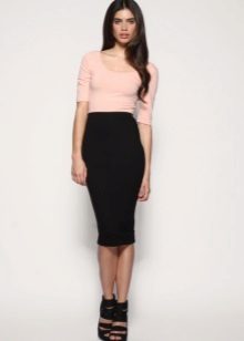 Dizlerin hemen üzerindeki dar etek, ince kızların arkadaşlarıyla parti yapması için mükemmel bir seçenektir. Çok açık görünmemek için, üst kısım mütevazı olmalıdır - örneğin, balıkçı yaka veya yaka olmayan bir bluz. Ayakkabılardan, bale ayakkabıları veya sandaletler gibi topuksuz seçeneği seçmelisiniz. Kışın diz çizme ile kombine edebilirsiniz.